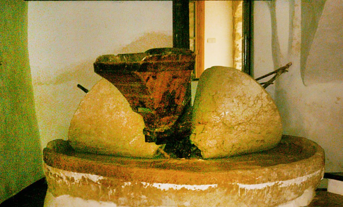 Work on the threshing floor began in July with the preparation of barley and oats, if any had been harvested, and then with wheat. Once the mowing was finished, the sheaves were taken to the threshing floor where the work of “threshing with feet” began in order to separate the grain from the ear with the help of mules. In August, the winnowing work began, throwing the mixture of grain and stalks into the air so as to clean it, separating the grain from impurities and chaff. In late August, the work ended with a festivity celebrating the end of the threshing chores, which is why many celebrations in our villages take place at the end of summer, which was the moment when the wheat was distributed. Later, the work became mechanised and the thresher appeared, rented during the threshing periods. This machine saved on labour and performed the same functions until wheat disappeared from cultivation between 1963 and 1965.